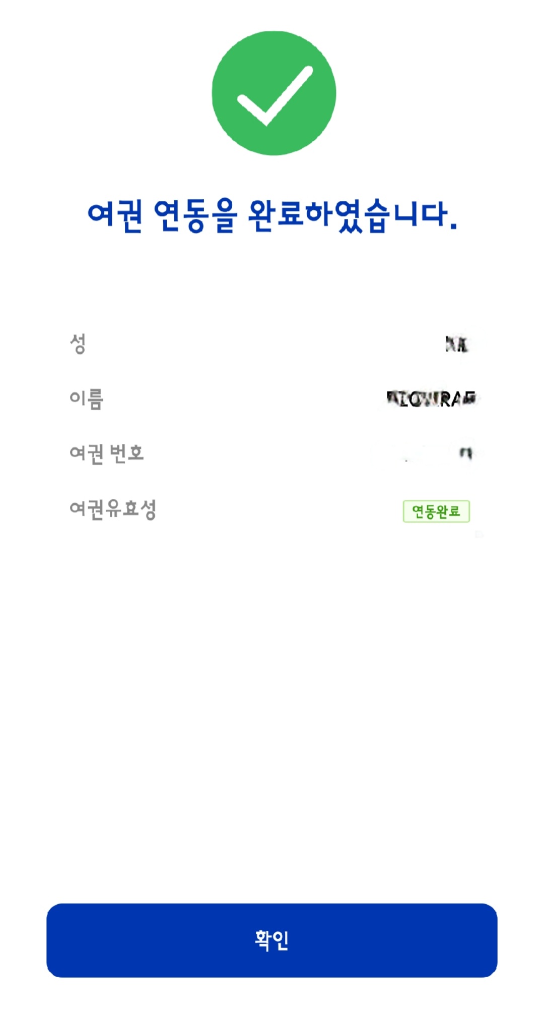 3. 본인인증(카카오톡, 문자, 금융인증서)완료 후 여권정보 연동 후 본인인증 증명서 발급 완료
