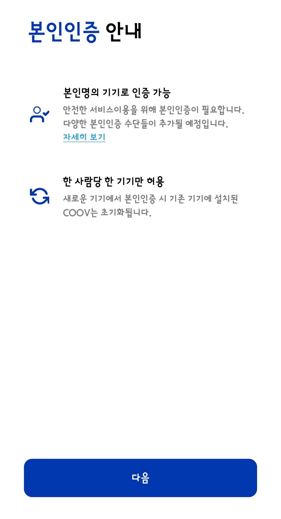 1. 먼저 세계 최초 블록체인 기반 코로나19 예방 접종 인증 시스템 쿠브(COOV)를 스마트폰에 설치합니다.