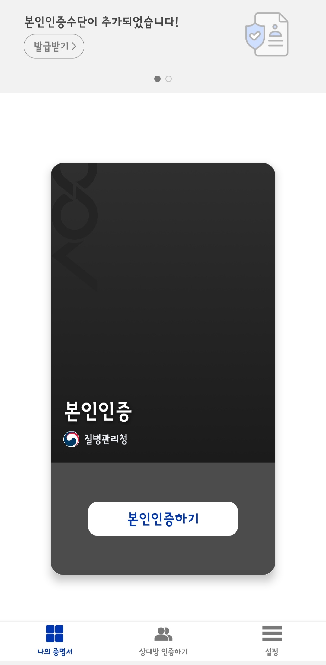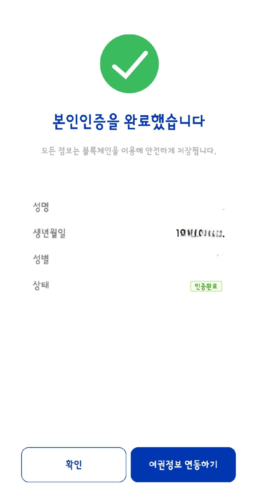 3. 본인인증(카카오톡, 문자, 금융인증서)완료 후 여권정보 연동 후 본인인증 증명서 발급 완료
