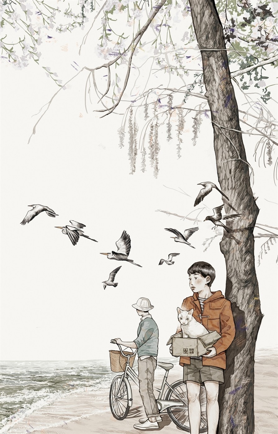 아버지와 나는 고로엔 해변에 고양이를 내려놓고 안녕이라 말하고는, 자전거를 타고 집으로 돌아왔다. 그리고 자전거에서 내려 '불쌍하지만 어떨 수 없었어' 하는 기분으로 현관문을 드르륵 열었는데, 조금 전에 버리고 온 고양이가 "야옹" 하면서 꼬리를 세우고 살갑게 우리를 맞았다. 우리보다 앞서 집에 돌아와 있었던 것이다. 어떻게 그렇게 빨리 돌아올 수 있었는지, 나는 도무지 이해할 수 없었다. 우리는 자전거를 타고 곧장 집으로 왔기 때문이다. 아버지 역시 이해하지 못했다. 그래서 한참이나 둘이 아무 말을 못 했다.