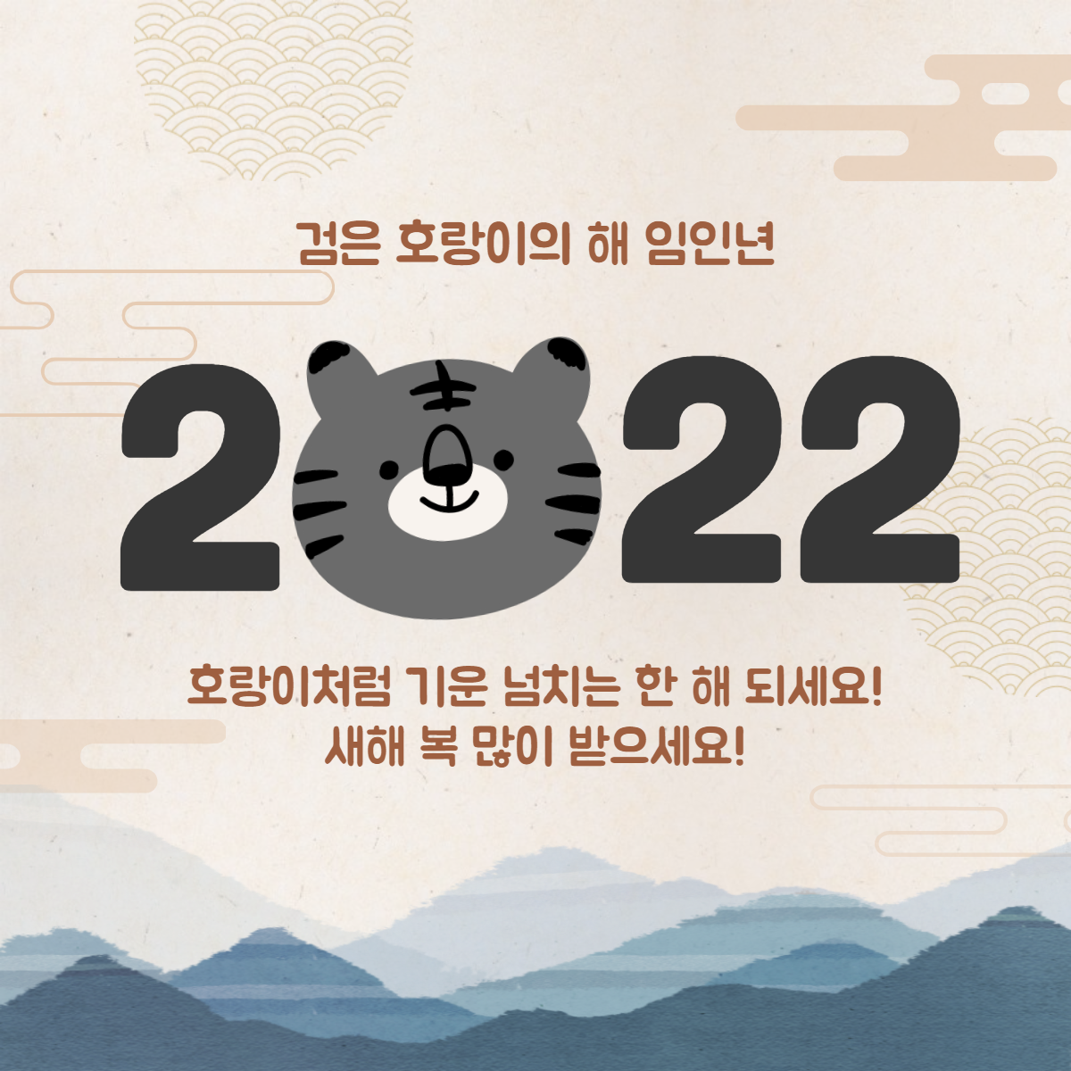 2022년은 육십 간지 중 39번째 임이 흑색, 인은 호랑이를 의미하는 임인년 검은 호랑이의 해입니다. 호랑처럼 용맹하고 강인하게 이 어려운 시기를 이겨낼 수 있다고 믿습니다.